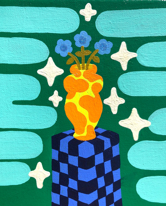 Flower Vase on Checkered Pedestal