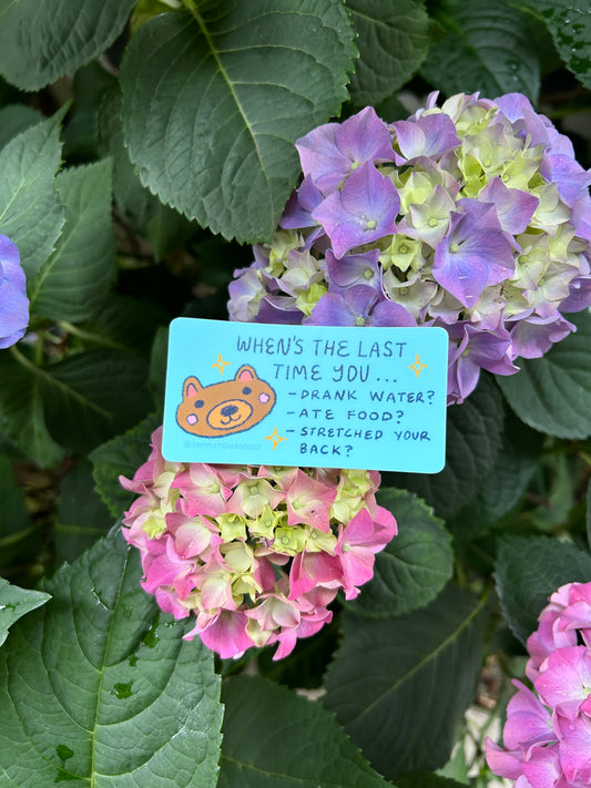 Self Care Check In with a Cute Bear Friend Sticker ~ Waterproof Vinyl Sticker