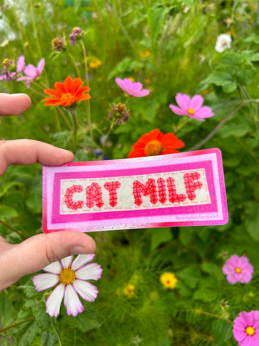 Cat MILF ~ Sequin Patch Inspired Waterproof Holographic Sticker