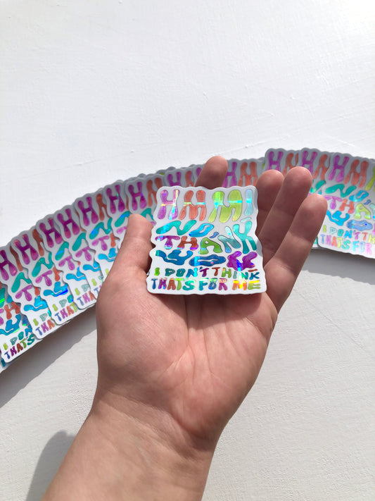 Hmm, No Thank You ~ Waterproof Holographic Vinyl Sticker