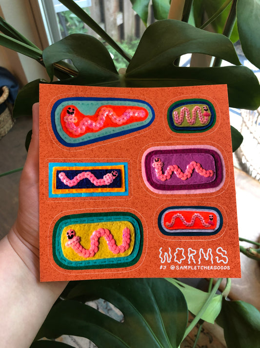 Worm Sticker Sheet ~ Sequin Patch Inspired Waterproof Sticker Sheet